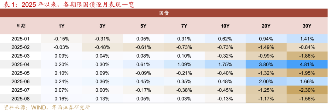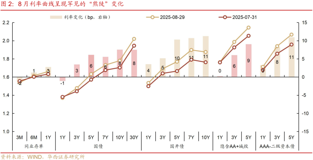 复盘8月各期限利率品种涨跌,虽然市场体感可能不佳,包括情绪可能较7月进一步弱化,但是资产表现反映,短久期利率债涨幅在扩大,而中长久期利率债的跌幅也在收敛,市场调整的斜率趋缓。