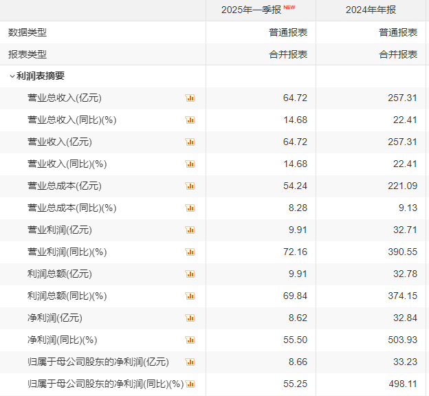 借助于收购豪威,韦尔股份营收跃升到百亿元以上,市值也一度超过3000亿元。财报显示,2024年,韦尔股份实现营收257.31亿元,同比增长22.41%;实现归母净利润33.23亿元,同比增长498.11%。今年一季度,公司实现营收64.72亿元,同比增长14.68%,创历年一季度营收新高;实现归母净利润8.66亿元,同比高增55.25%。