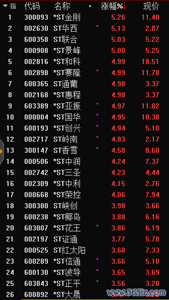195家ST股中仅73家收涨,收跌的则有98家。创业板的*ST金刚大涨5.26%,主板的ST华西、ST联合、*ST景峰、*ST惠程等11股涨停。不过,*ST凌云B、*ST苏吴等4股跌停,创业板的ST浩丰跌幅也达到了5.48%。